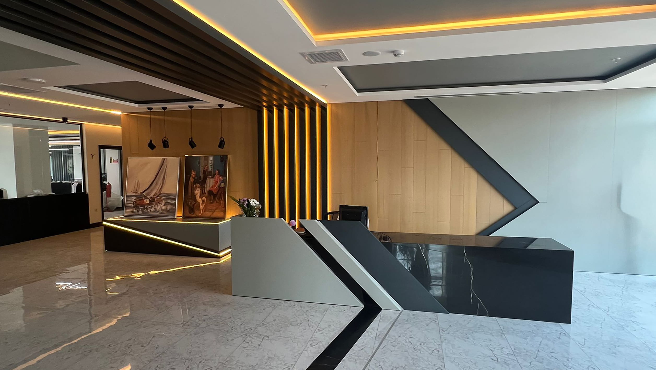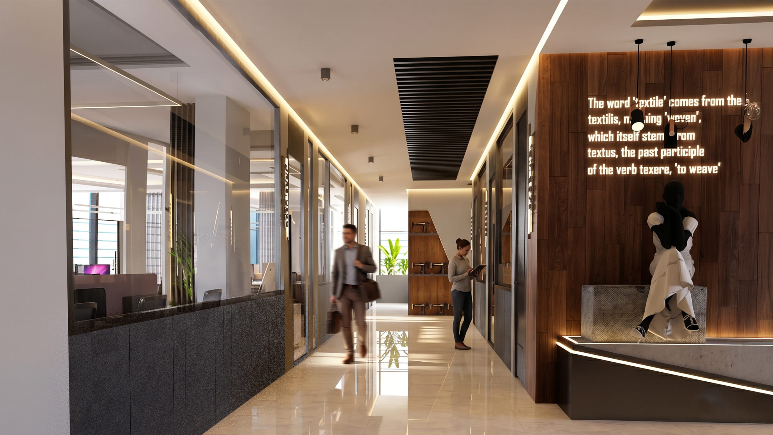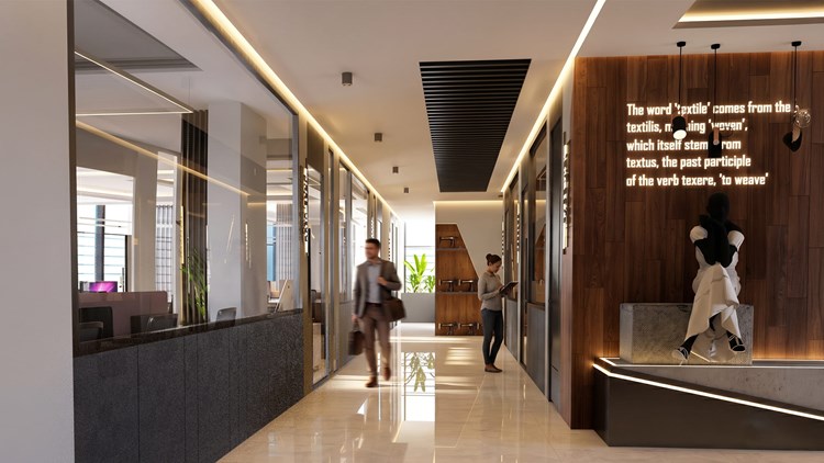 Yapı kütlesinin uzunluk genişlik oranının verdiği görüntünün dengelenmesi adına seramik cephe malzemesiyle bordürler oluşturulmuştur.Dış cephe tasarımındaki klasik hatların aksine iç mekân tasarımında modern çizgiler üzerine bir tasarım kurgusu oluşturulmuştur. Ahşap ve koyu renk paletine ait renklerle kullanılan hareketsiz mobilya tasarımları duvarlarda tekstile atıfta bulunan motto yazıları ile desteklenerek işlev ile bütünleştirilmiştir.
