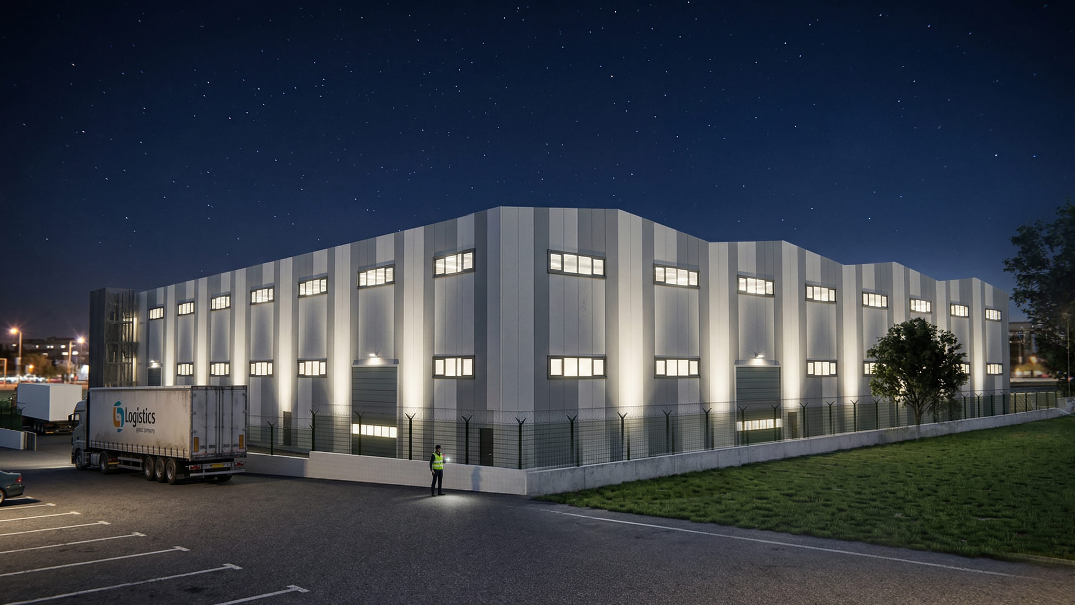 İdari blokta kullanılan düşey pencere ritmi, tuğla kaplama yüzeyler ve yatay bant elemanları ile yapı ölçeği dengelenmiş, endüstriyel yapı karakteri modern bir yorumla güçlendirilmiştir. Cephede kullanılan tuğla ve metal yüzey kombinasyonu, hem dayanıklılık hem de estetik açıdan dengeli bir çözüm sunarken, köşe noktada oluşturulan kütlesel vurgu yapının algılanabilirliğini artırmaktadır.Yükleme ve boşaltma operasyonları yapı çevresinde konumlanan servis yolları ve araç yanaşma alanları ile desteklenmiş, ağır vasıta ve binek araç sirkülasyonu birbirinden ayrılarak güvenli ve düzenli bir kullanım kurgusu oluşturulmuştur.