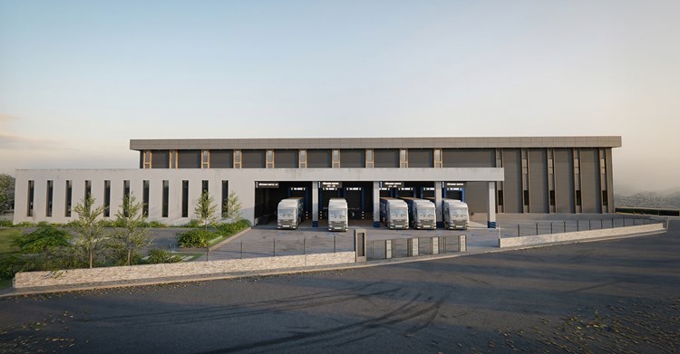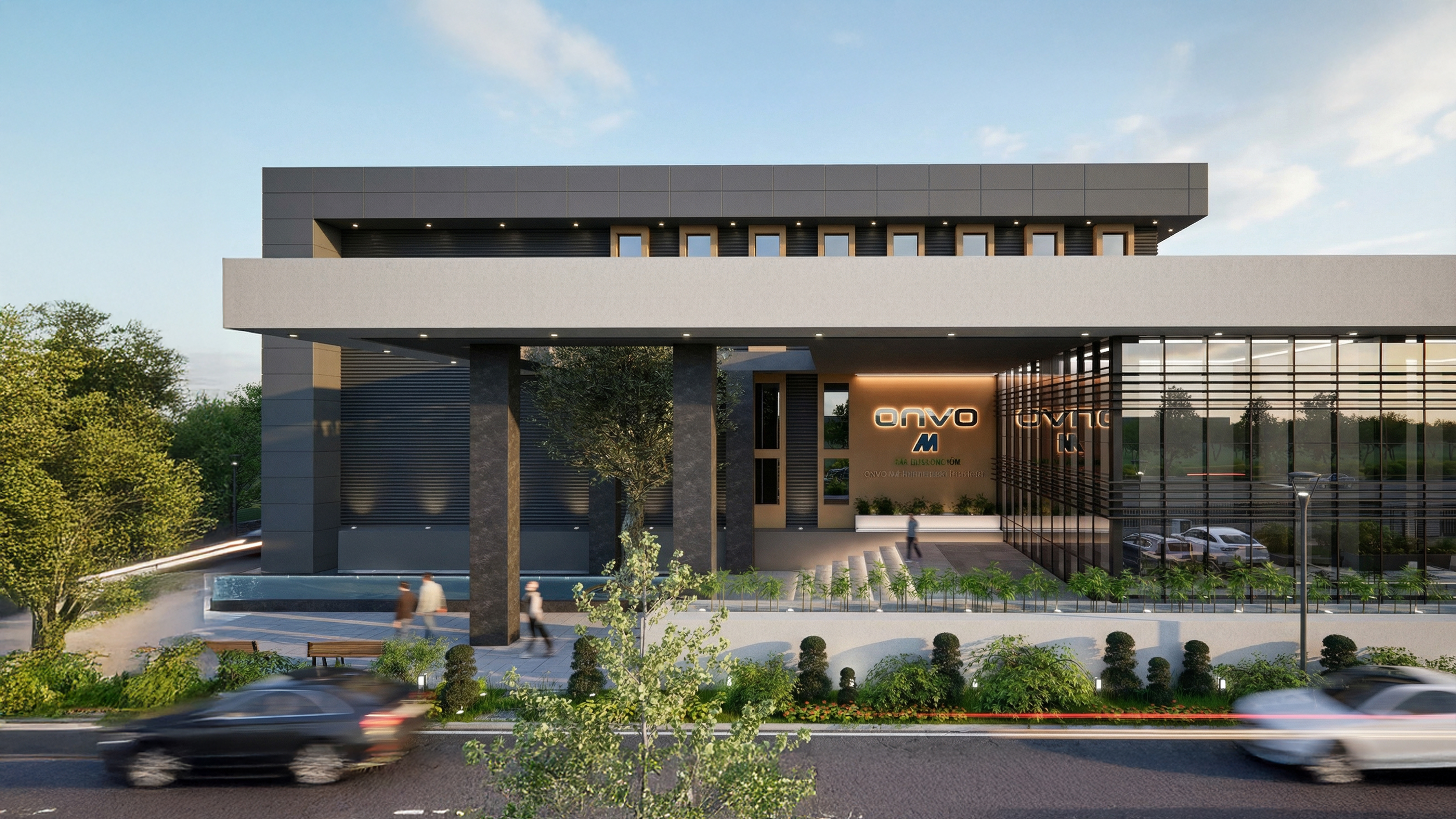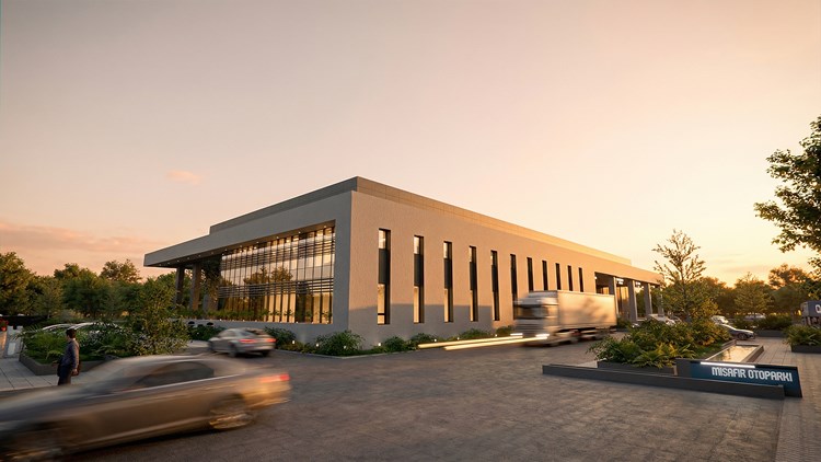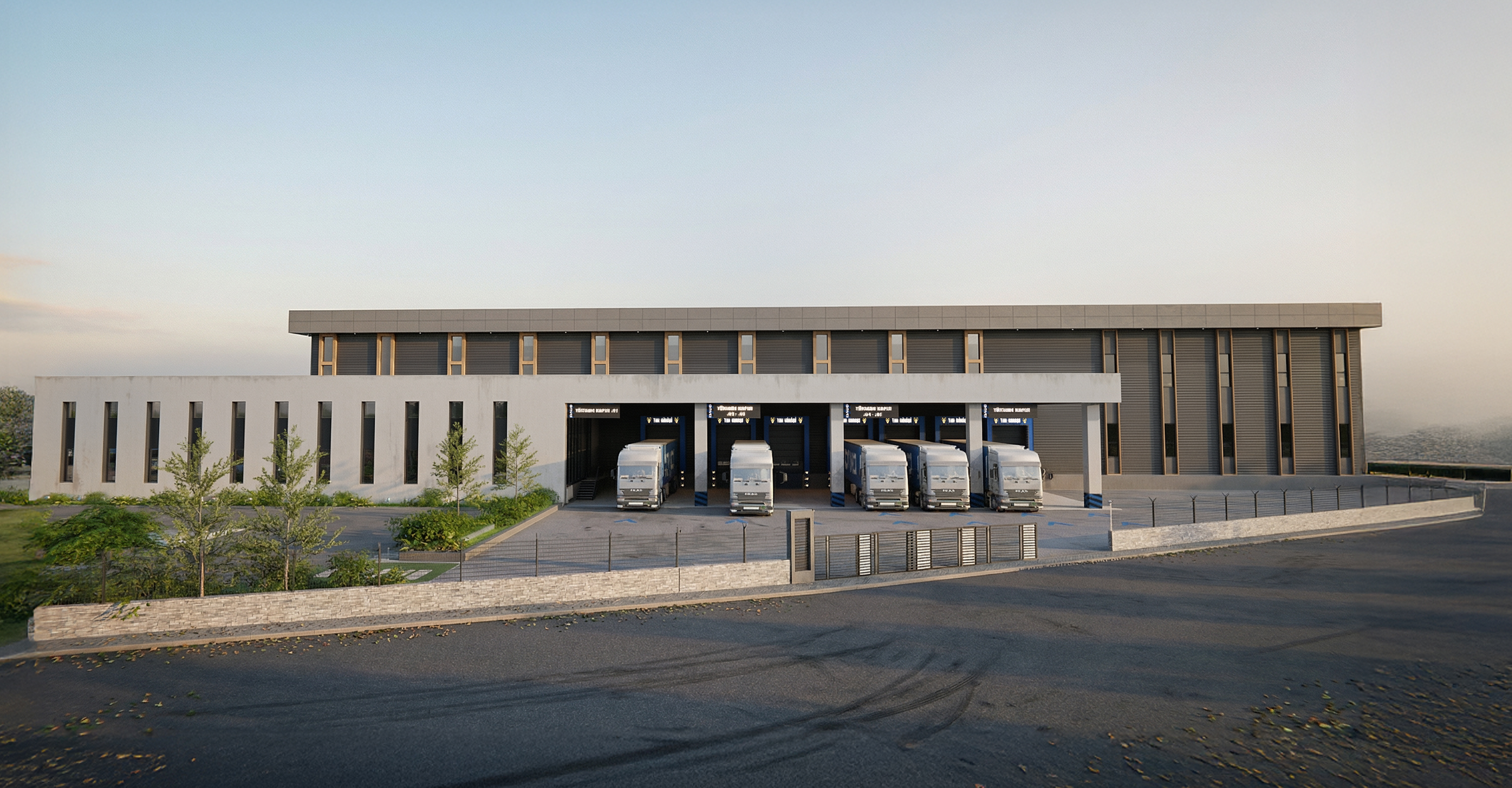 Mimari kütle tasarımında yatayda güçlü bir etki hedeflenmiş, ana depo hacmi ile ondan ayrışan ve geri çekilerek vurgulanan idari giriş bloğu arasında dengeli bir kompozisyon kurulmuştur.Cephede kullanılan kompozit panel kaplamalar, düşey pencere ritmi ve yatay bantlarla desteklenerek ölçek kontrolü sağlanmış, giriş bölümünde yer alan geniş cam yüzeyler iç-dış mekân ilişkisini güçlendirerek şeffaf ve davetkâr bir kurumsal kimlik oluşturmuştur.