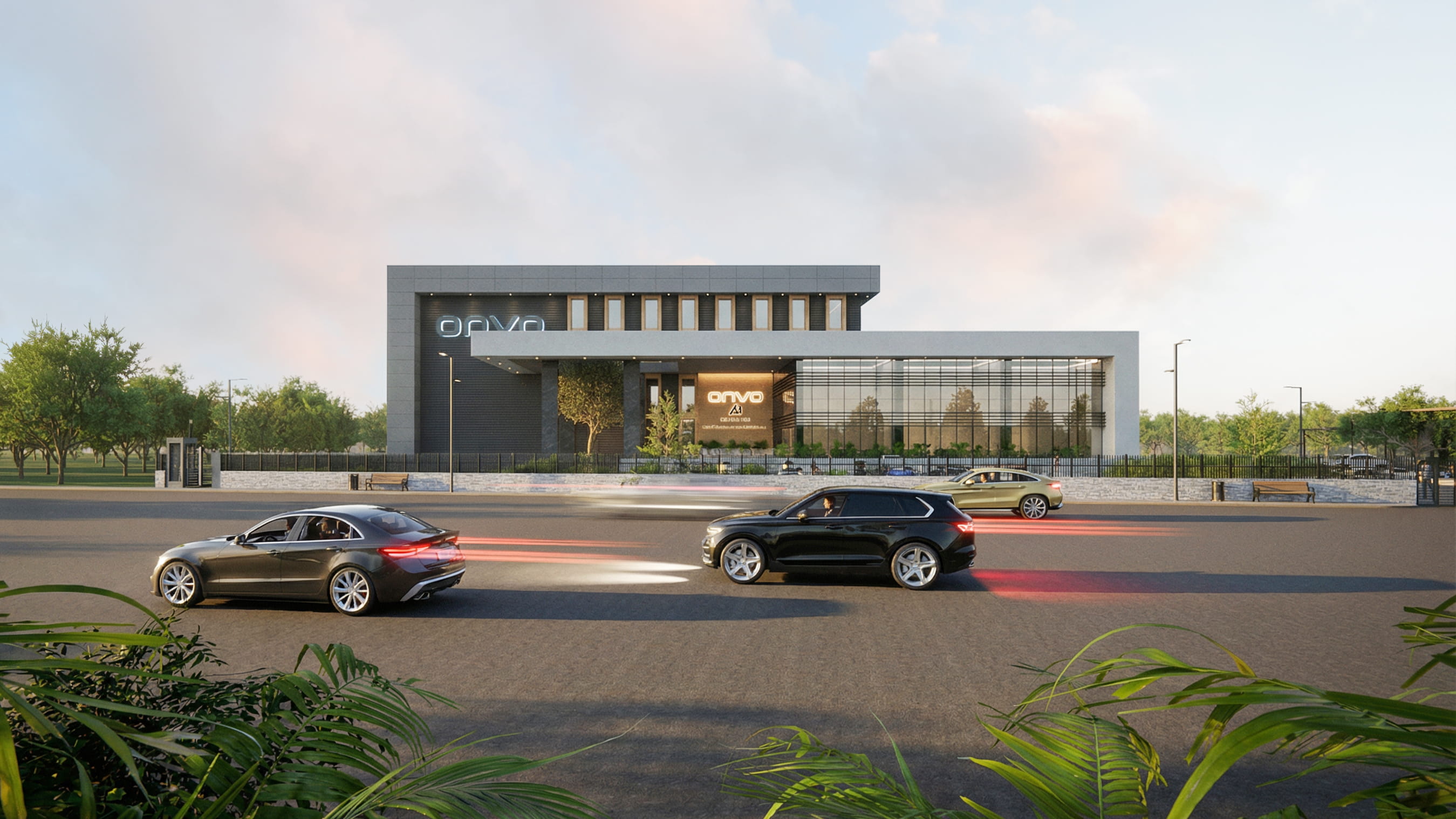 İstanbul Çatalca'da konumlanan ONVO Lojistik ve Depolama Tesisi, geniş bir arazi üzerinde üretim, depolama ve dağıtım süreçlerini entegre biçimde karşılamak üzere çağdaş endüstriyel mimari prensiplerle tasarlanmış bütüncül bir tesistir. lineer formda kurgulanan ve yüksek hacimli olarak çözülen proje, cephe boyunca dizilen yükleme rampaları ve tır yanaşma cepleri eş zamanlı operasyonlara olanak tanıyacak şekilde planlanmıştır.Ağır vasıta ve binek araç sirkülasyonları farklı akslar üzerinden çözümlenmiş, personel ve ziyaretçi girişleri kontrollü alanlarla ayrılarak güvenlik ve işleyiş sürekliliği sağlanmış, parsel girişinde konumlanan güvenlik birimi tüm hareketleri denetleyecek şekilde stratejik olarak yerleştirilmiştir.