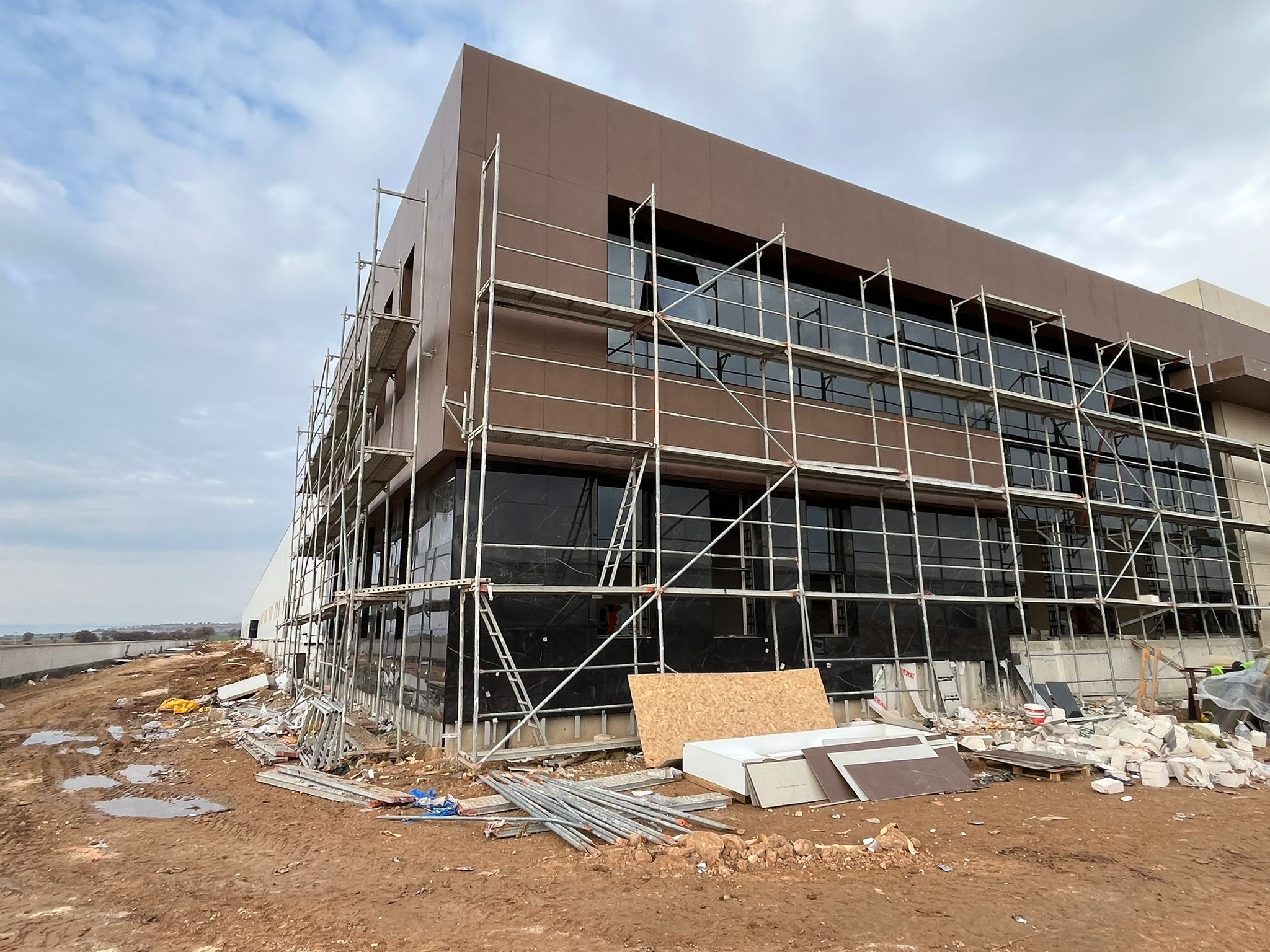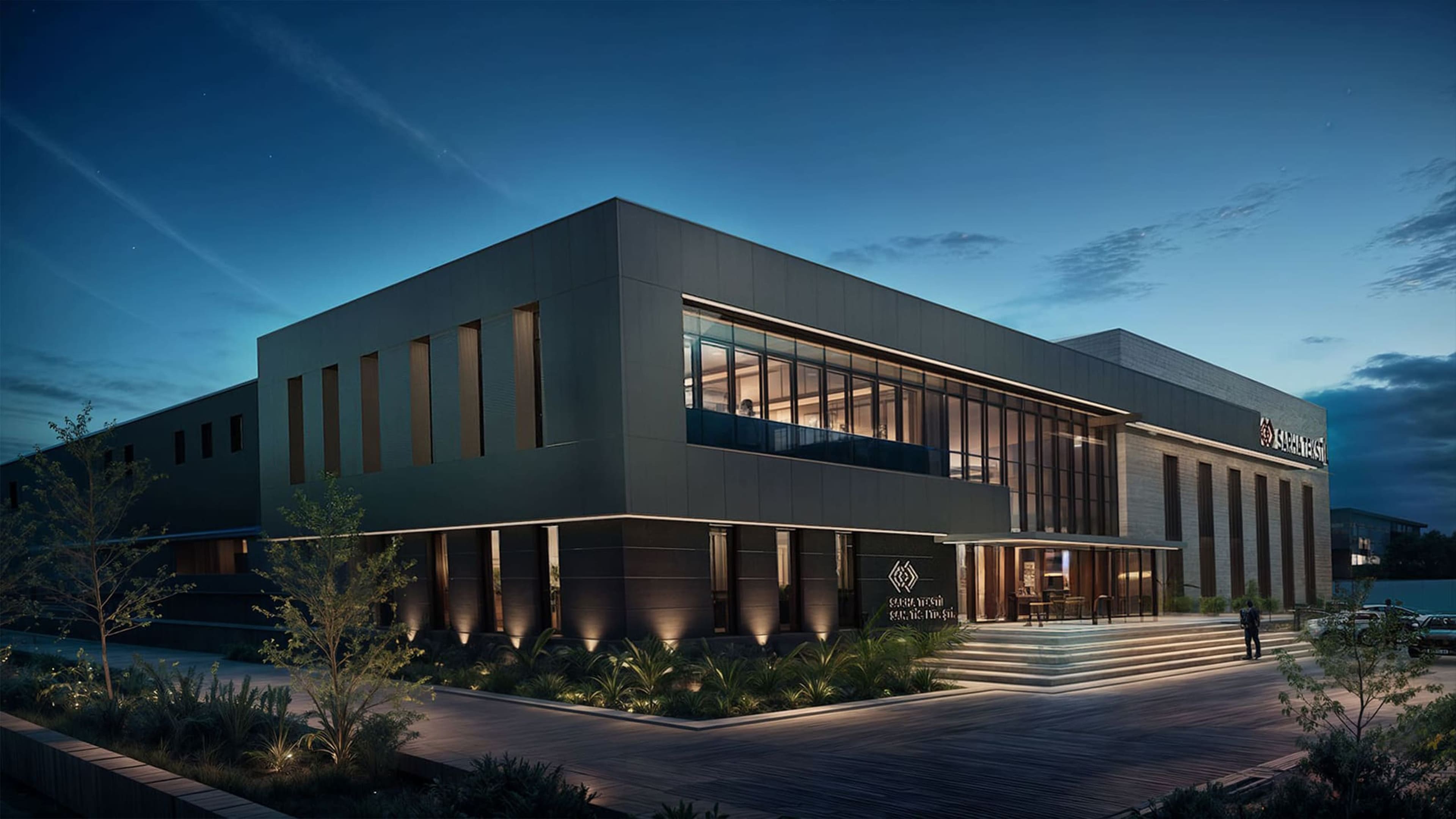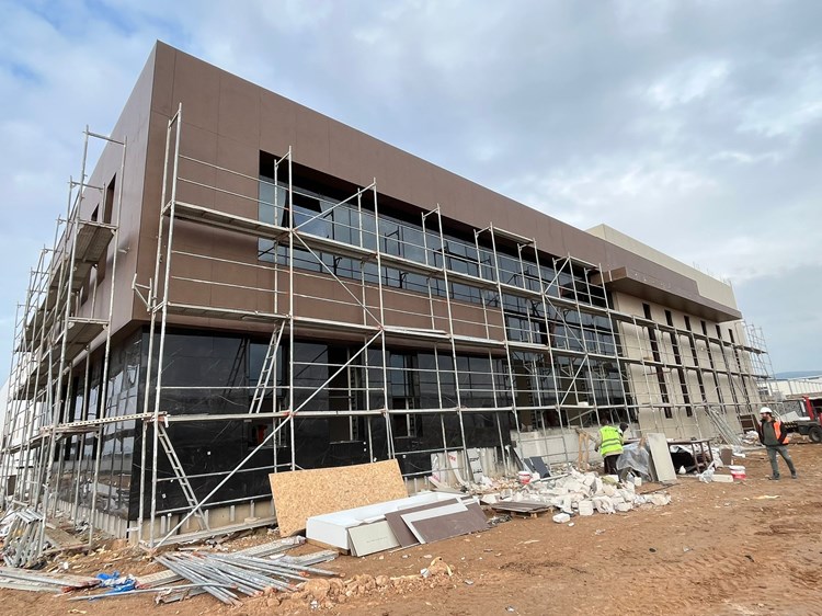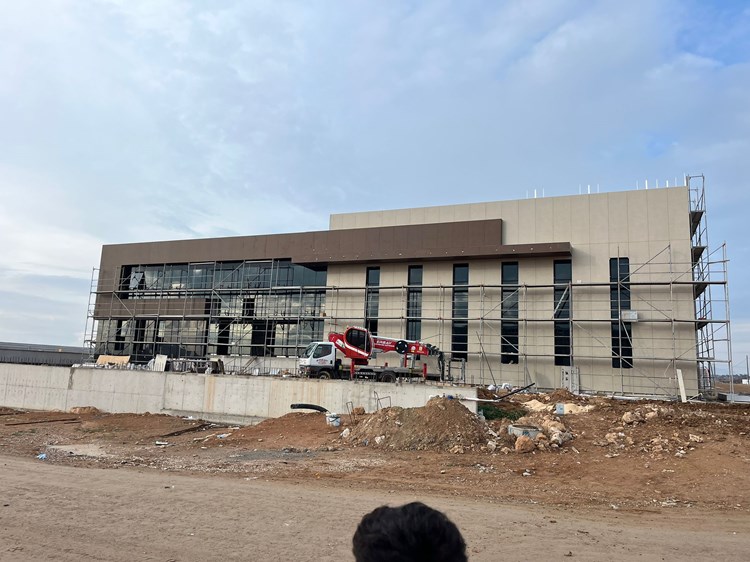 Üretim tesisi niteliğindeki diğer cephelerde ise işlevselliğe uygun olarak sandviç panel kullanılmış ve pencere boşlukları gerekli sayıda açılmıştır; böylece tüm cephelerde hem modern hem de fonksiyonel bir tasarım dili oluşturulmuştur. Çatı, çelik strüktürel bir konstrüksiyon olarak tasarlanmış olup, beş aks üzerinde iki beşik çatının oluşması ile geniş açıklıkları geçecek şekilde taşınmakta; çeliğin hafif ve esnek yapısı, inşaatın hızlı ve verimli bir şekilde ilerlemesine olanak sağlarken, aynı zamanda yapının sürdürülebilir ve modern bir taşıyıcı sistemle üstünün örtülmesini mümkün kılmaktadır.