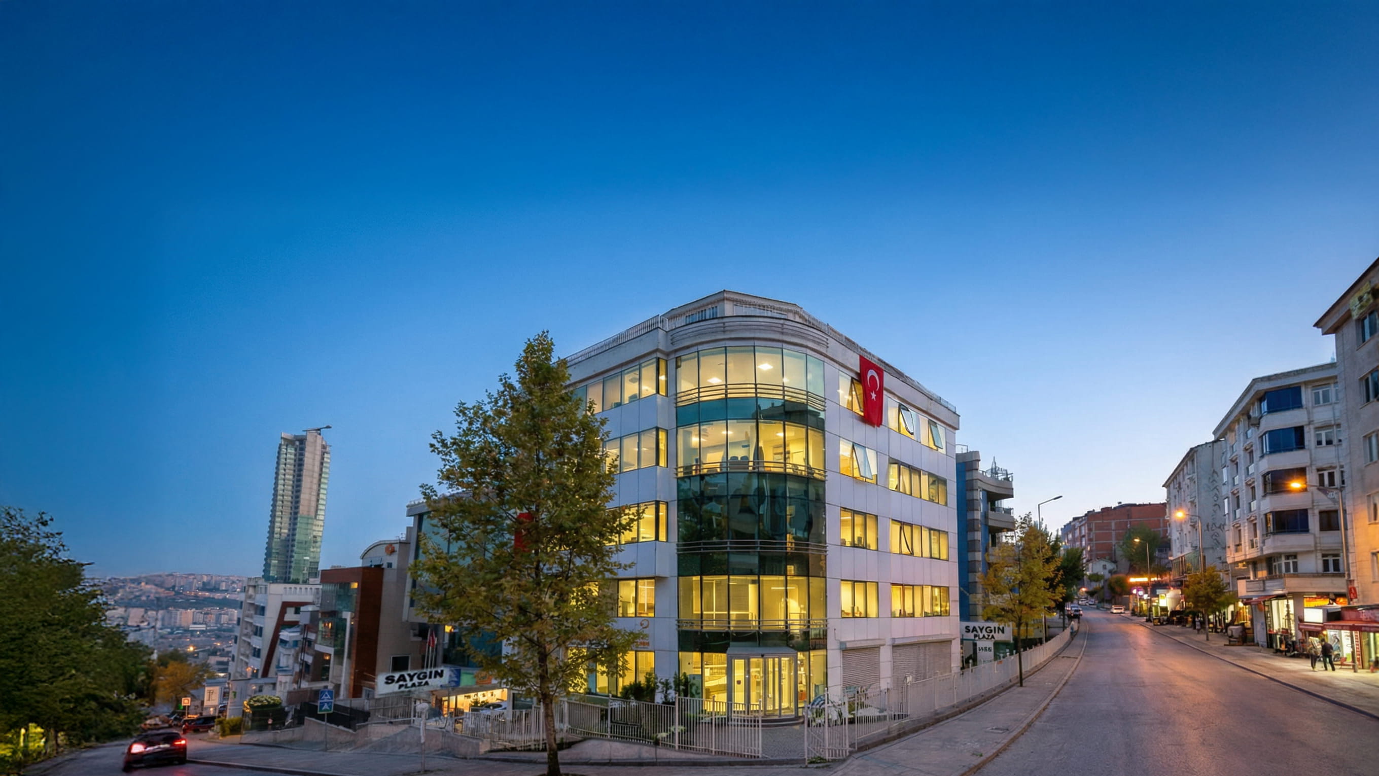 İstanbul Esenyurt’ta konumlanan Saygın Plaza, kentsel doku içerisinde ticari ve ofis kullanımına yönelik tasarlanmış, köşe parsel avantajını etkin kullanan çağdaş bir iş merkezi projesidir. Yapı, bulunduğu eğimli araziye uyum sağlayan yerleşim kurgusu ve çevre yapılarla kurduğu ölçek ilişkisi ile kent silüetine dengeli bir katkı sunmaktadır.