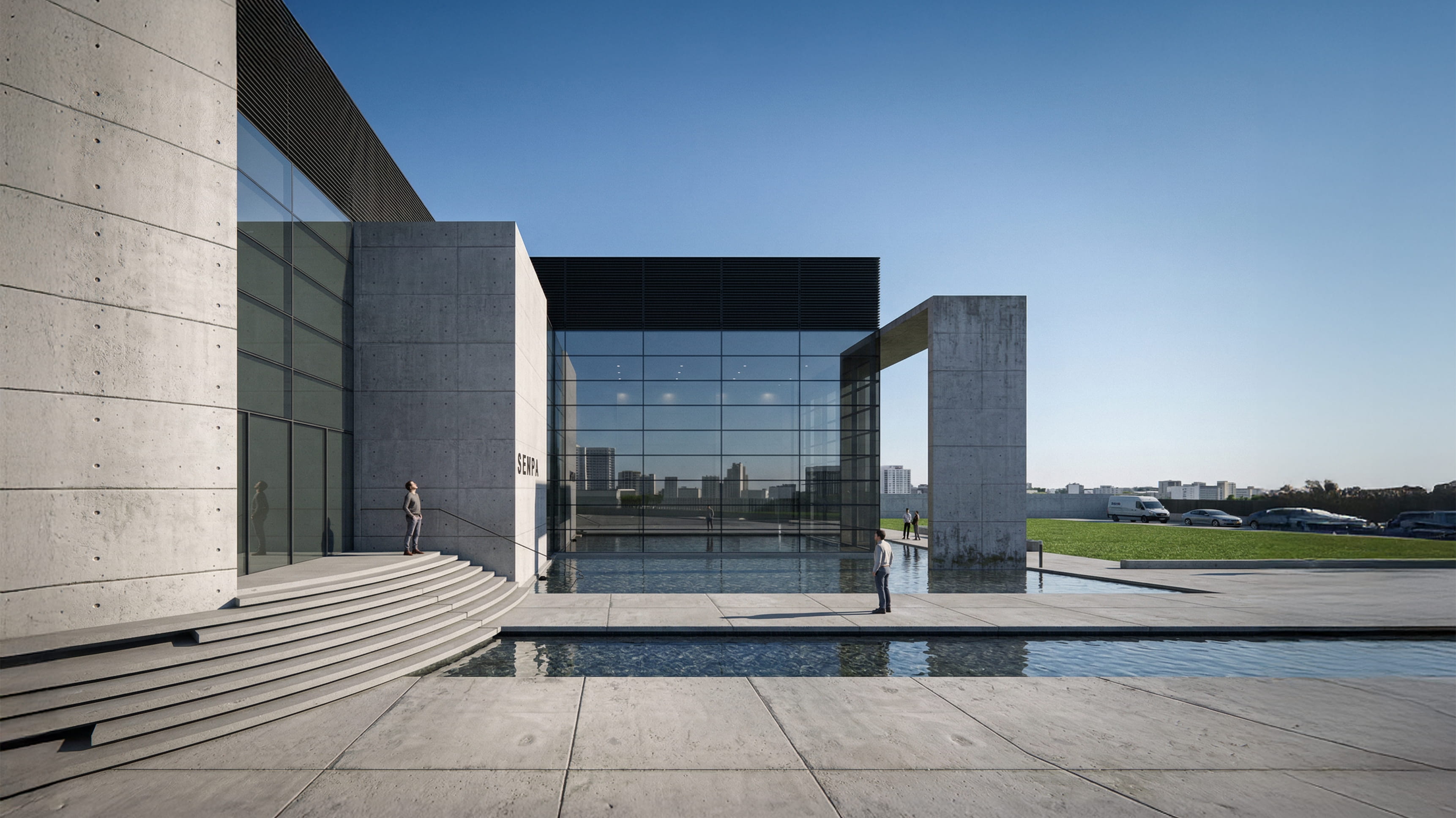 Tasarımdaki temel yaklaşım yapının yalın, sağlam ve sert bir form yakalaması olmuştur. Yapının giriş aksına sert formunu bölen bir su öğesi yerleştirilmiştir. Yapıya giriş yataylığı vurgulayarak brüt bir beton köprü ile sağlanmıştır. Yapının fuaye alanında bu yataylığa karşıt dikey bir boşluk oluşturarak masif kütlede giriş algısı yaratılmıştır.