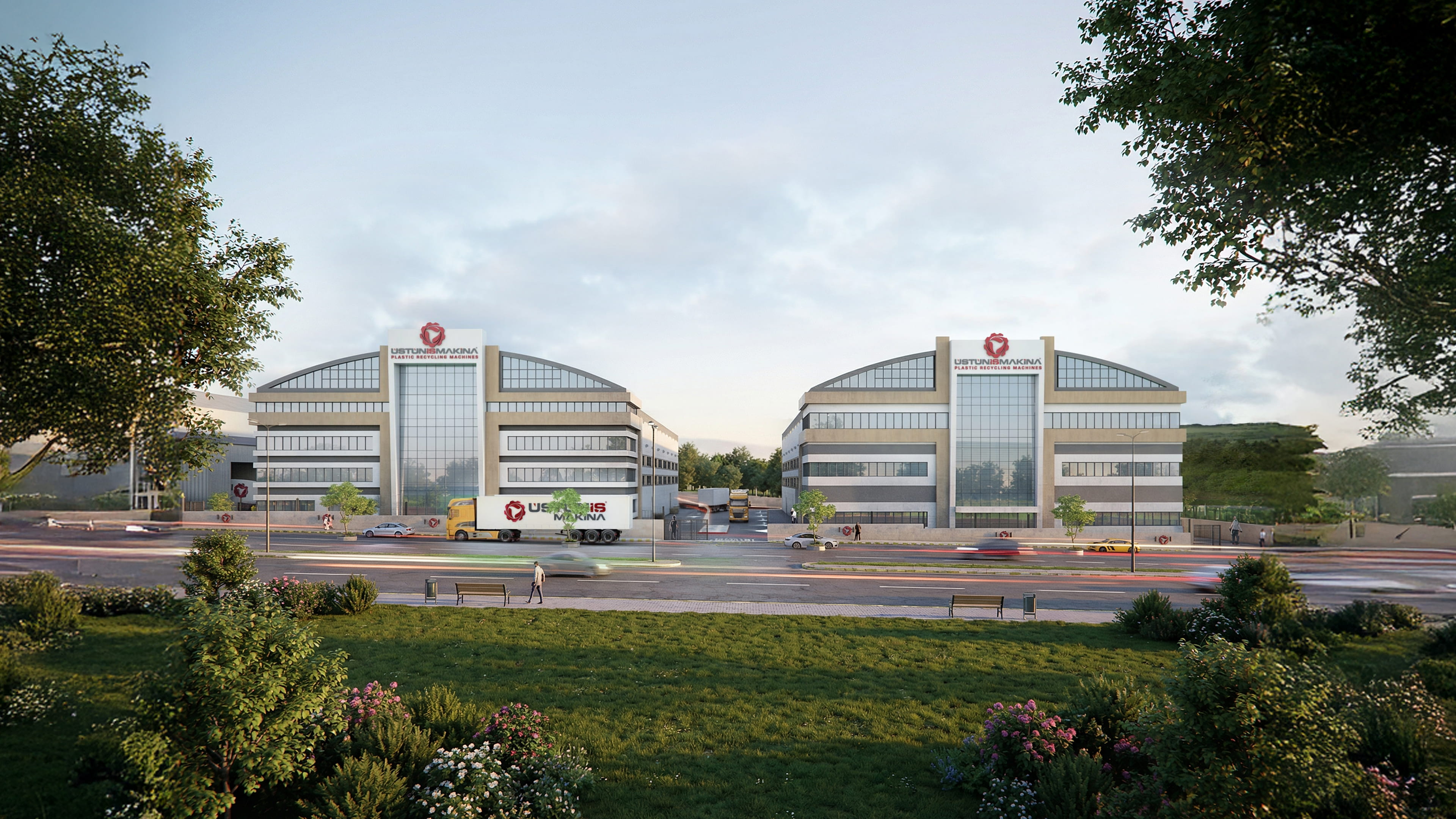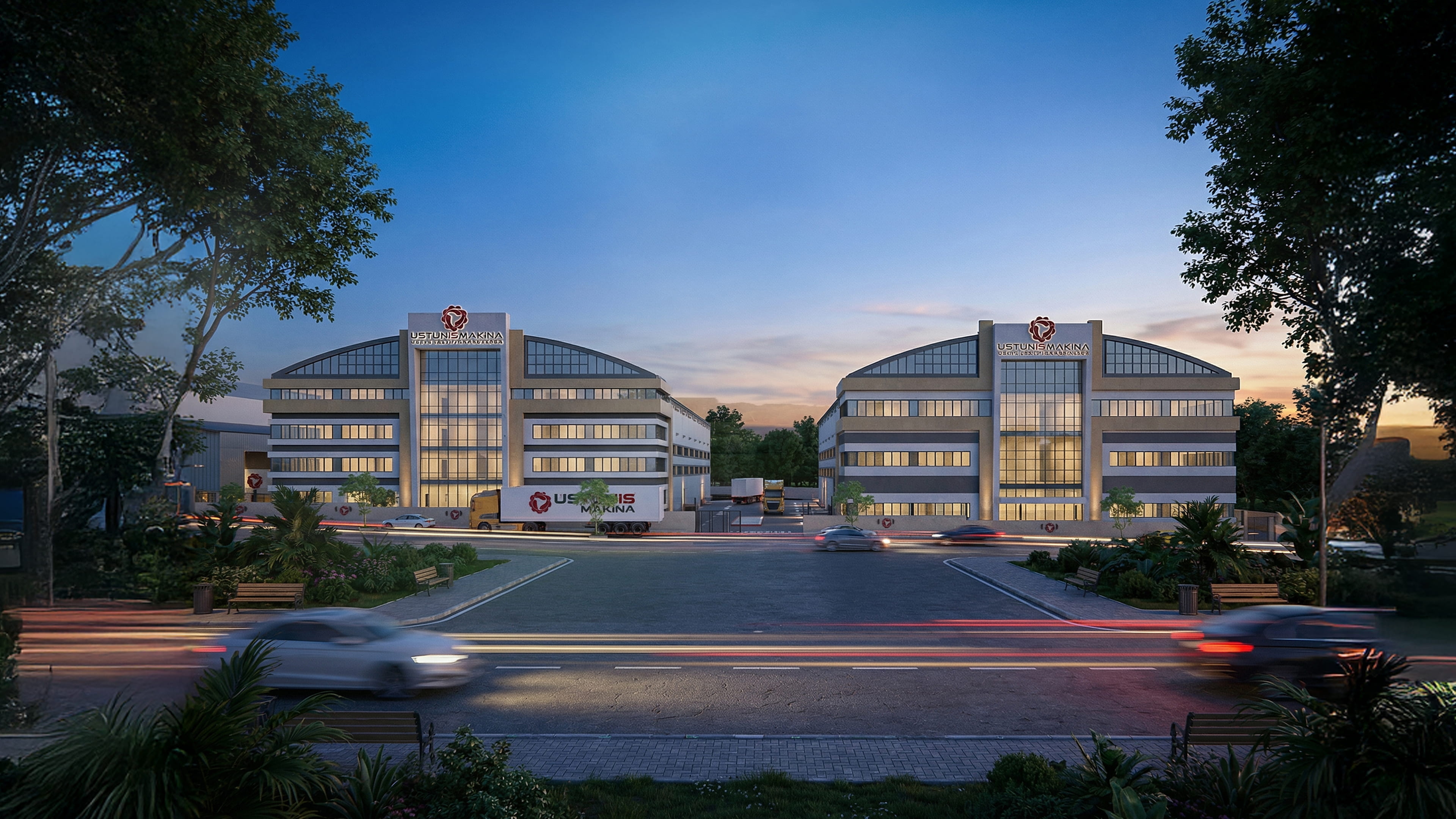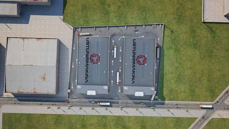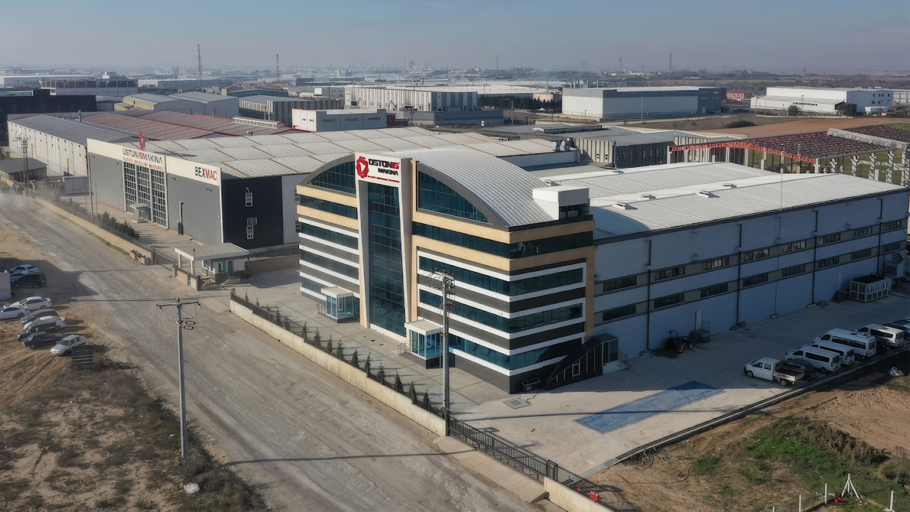 Üstüniş Makina, Tekirdağ ilinin Ergene ilçesinde 12310 metrekare arazi üzerine A ve B blok olarak 2 yapı şeklinde tasarlanmıştır. A blok yerinde tamamlanmış olup 4665 metrekare kapalı alana sahiptir. B blok yapım aşamasındadır, 4410 metrekare kapalı alana sahiptir. Parsel içinde iki blok etrafında bir ring yolu bulunmaktadır ve giriş çıkış araç yönü güneydoğu yönündedir. Parselde 48 adet açık otopark mevcuttur. Her iki blokta kuzeybatı, kuzeydoğu ve güneybatı yönünde olmak üzere toplam 4 adet endüstriyel kapı bulunmaktadır.